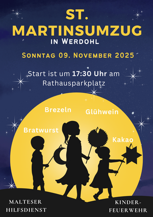 Am Sonntag, 09. November 2025 startet der diesjährige Martinsumzug um 17:30 Uhr am Rathahausparkplatz.